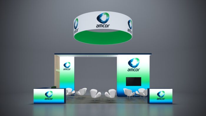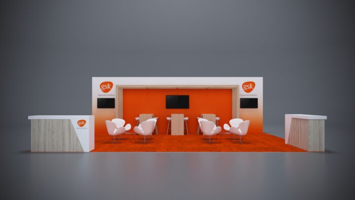 This 20X30 island booth rental offers expansive branding opportunities with oversized back graphics, side panels for logo placement, and space for product demonstrations. As a premium choice for Boston trade show booth rentals, this design ensures your brand dominates the trade show floor.
